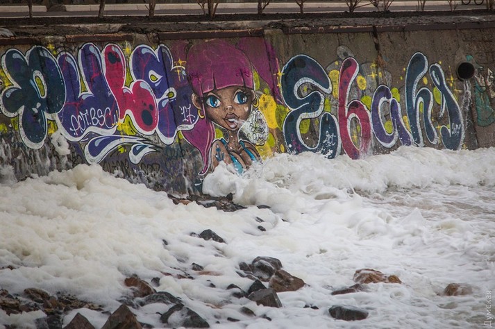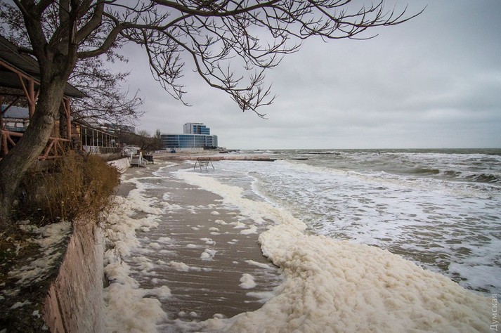 «У деяких місцях піною покриті цілі пляжі. Відпочиваючих дуже мало, і чайки можуть розслабитися і спокійно милуватися стихією», - пише видання.