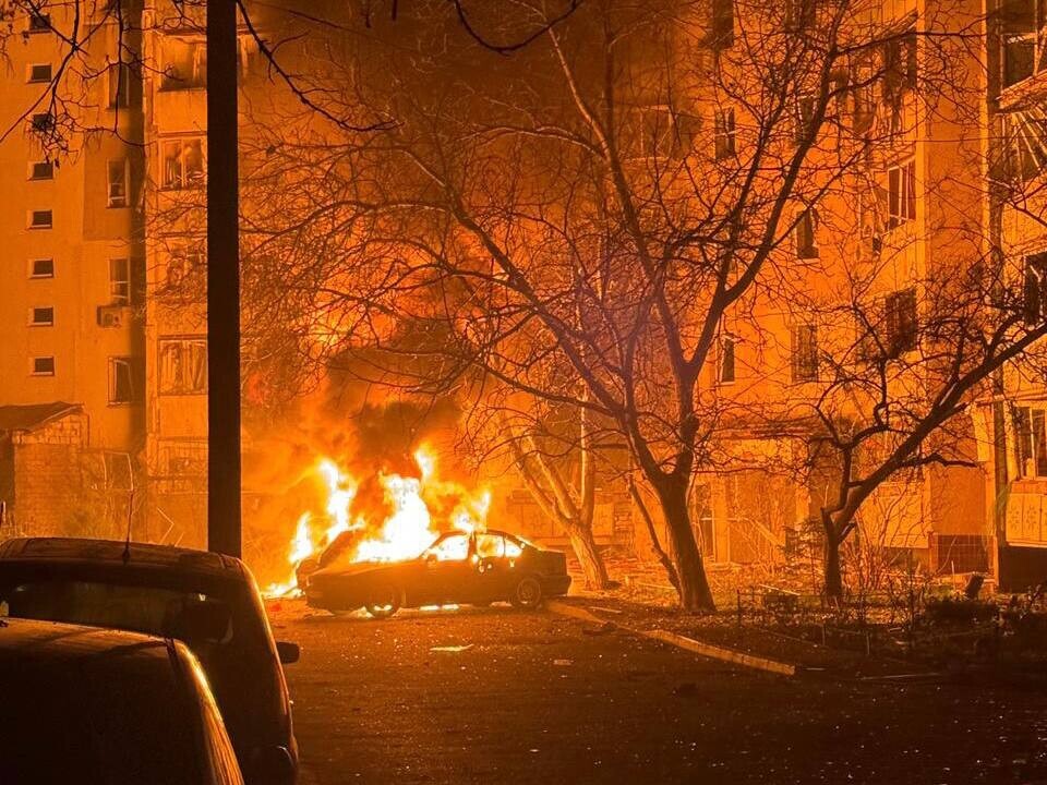 Унаслідок атаки в двох районах Одеси зафіксовано влучання в багатоповерхові будинки. В одному з них спалахнула пожежа у квартирах, також пошкоджено цивільні автомобілі.