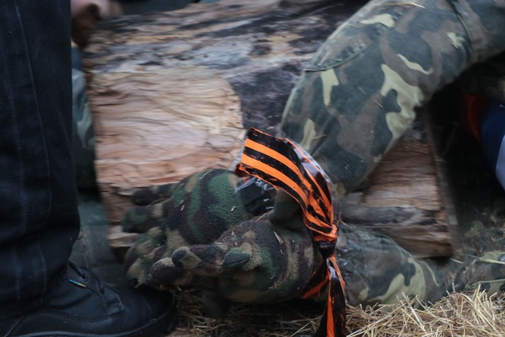 Члени одеської організації «Самооборона» спалили опудало російського окупанта під стінами консульства Російської Федерації. Акцію приурочили до трерьої річниці боїв під Дебальцевим.