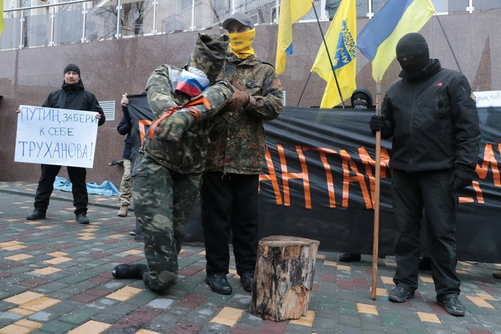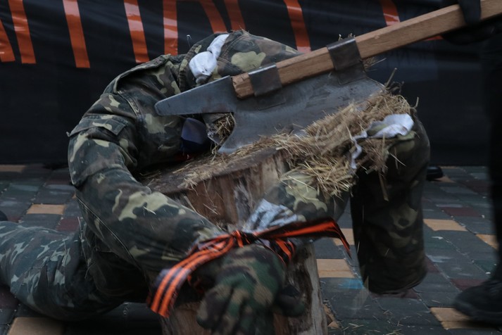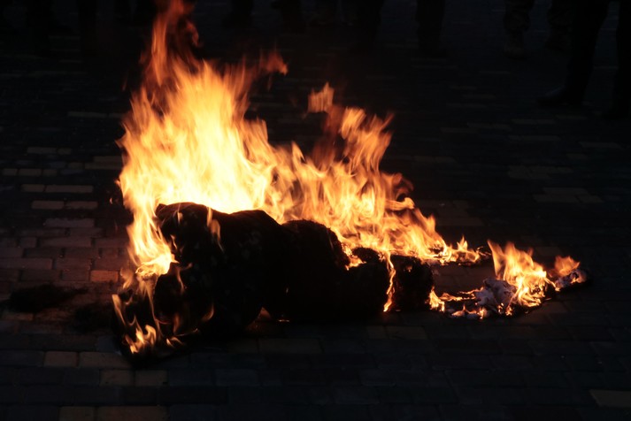 На Гагарінському плато близько двох десятків активістів спочатку обезголовили опудало, а потім підпалили.