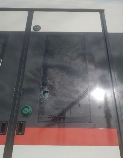 Внаслідок нападу розбито вікно вхідних дверей поїзда