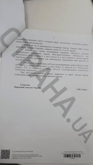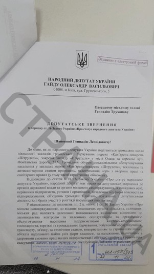 За даними видання, за кілька днів до кав'ярні «Штрудель» почали приходити з перевірками, зокрема співробітники ДСНС. Причиною цього стало депутатське звернення меру Одеси Геннадію Труханову від «слуги» Олександра Гайду. А підставою для депутатських звернень стали нібито «масові скарги» одеситів Олександру Гайду на обслуговування в цьому кафе.