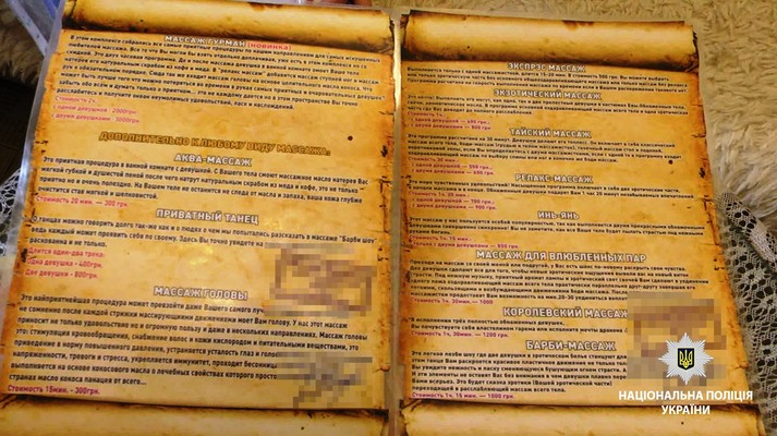 Під час проведення санкціонованого обшуку в приміщенні «масажного салону» правоохоронці виявили отримані від клієнтів кошти у розмірі 32 тисяч гривень та 200 доларів, рекламні буклети, електронні носії інформації та інші речові докази.