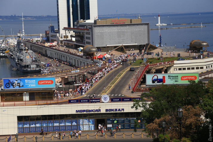 Живий ланцюг розтягнувся на всю довжину Потьомкінських сходів, а потім до самого Морвокзалу, де учасників акції зустрів оркестр Військово-морських сил України.