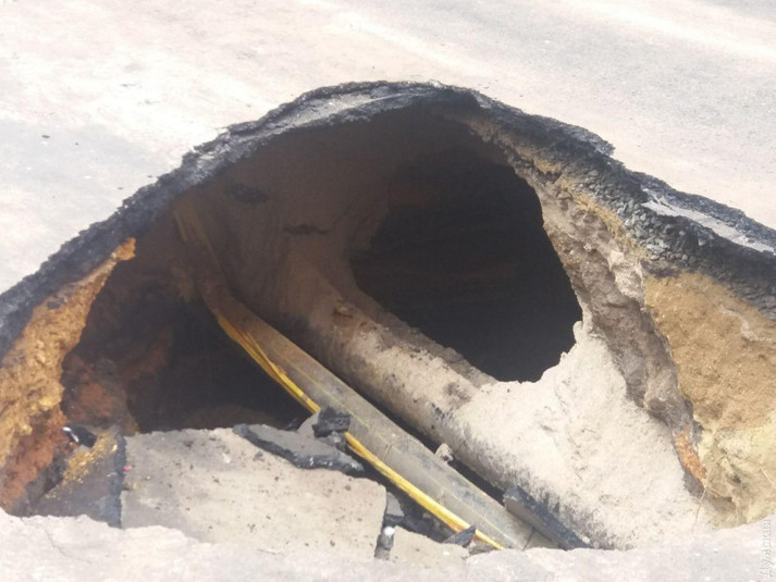Посеред вулиці в Одесі утворилася яма (фото, відео)