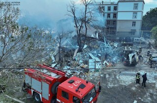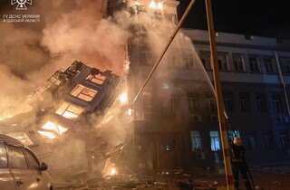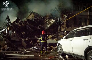 Унаслідок ракетної атаки в центрі міста сталось часткове руйнування чотирьохповерхової будівлі, пожежа розповсюдилася на 500 м2.
