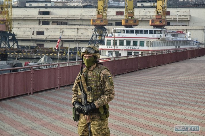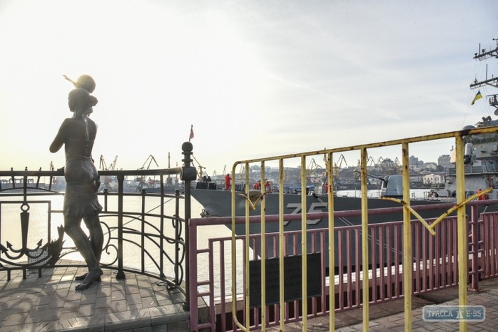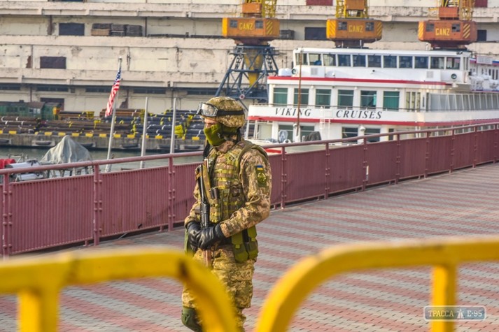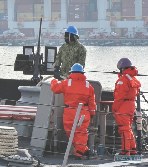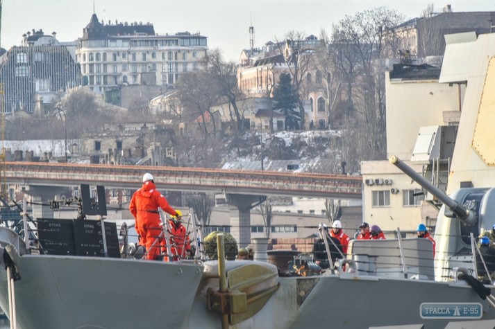 Через прихід корабля в порту вжито посилених заходів безпеки. Територію біля есмінця патрулюють автоматники, а частина Морвокзалі обгороджена і доступ туди закритий.