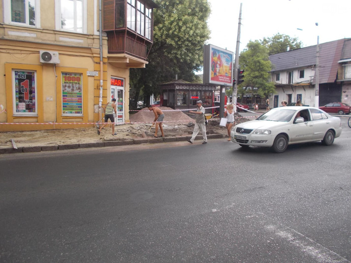 Зо два десятки метрів пішоходи повинні долати по проїжджій частині. Хто веде роботи на стендах не вказано.