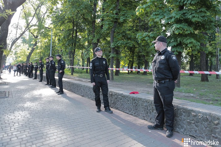 Навколо Куликового поля стоїть очеплення з поліції: курсанти Академії внутрішніх справ стоять біля металевих сіток. На самій площі кілька десятків автобусів із бійцями Нацгвардії та співробітників різних підрозділів поліції. Усіх, хто хоче потрапити на Куликове поле, перевіряють через металеві рамки та оглядають особисті речі.