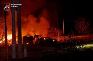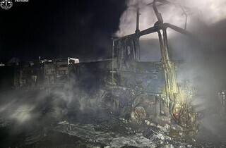 Внаслідок влучань спалахнула пожежа на автостоянці з вантажними автомобілями, яку рятувальники оперативно ліквідували.
