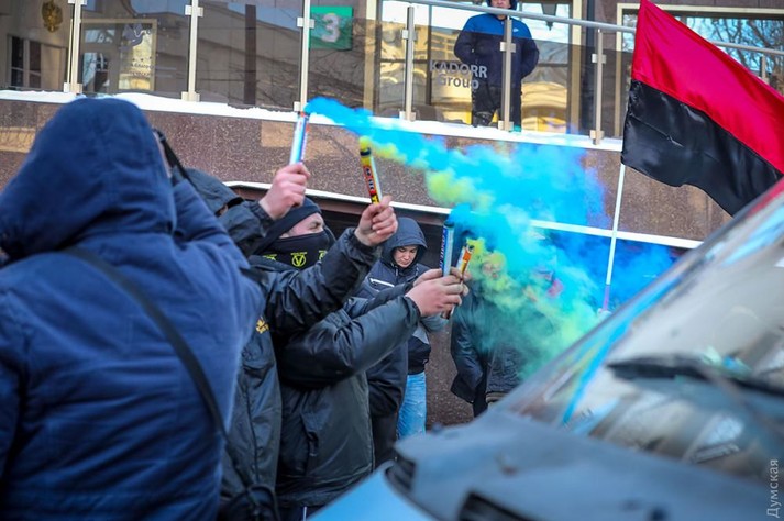 Сьогодні вдень близько 30 активістів патріотичних організацій Одеси пікетували консульство Російської Федерації з вимогою звільнити окуповані території України.