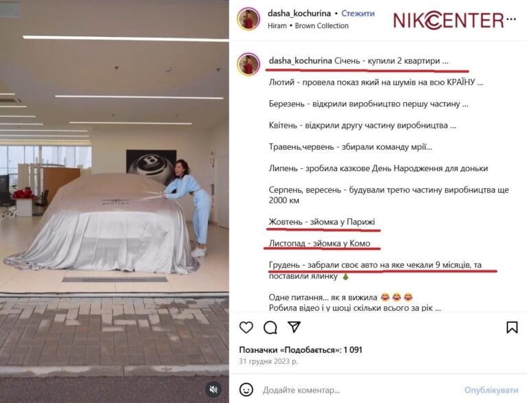 Крім власних покупок, у мережі дружина податківця Дар’я Кочуріна в грудні 2023 року похвалилася своїм авто Bentley Continental GT вартістю понад $400 тис. За словами жінки, воно належить її колишньому цивільному чоловіку Віталію Боярському, який нібито забрав його в неї, а потім повернув. У деклараціях Дмитра Хандусенка інформація про це авто відсутня.