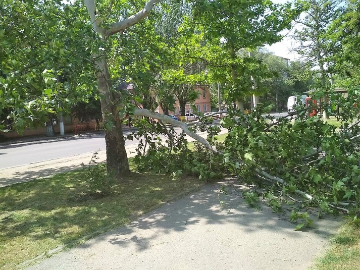 Дерева повалені за адресами: вул. Асташкіна, 14, вул. Дюківська, 4 (дерево впало на машину), вул. Сегедська, 12, вул. Інглезі, на розі Олександрівського проспекту і вул. Троїцької, Французький бульвар (біля кіностудії), на розі вулиць Малої Арнаутської і Гімназійної, Тираспольске шосе, а також просп. Небесної Сотні, 47 (дерево впало на будинок). Крім того, сильними поривами вітру зламані дві великі гілки: на розі вулиць В. Стуса та Мельницької і по вул. Кутузакія, 11а (гілка впала на машину).