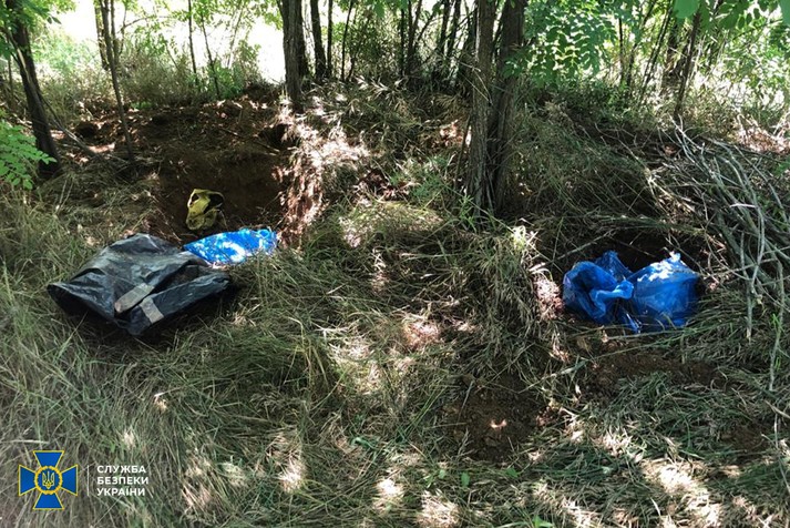 Тайник був прихований у лісосмугі поблизу одного із селищ. Зі схрону правоохоронці вилучили: