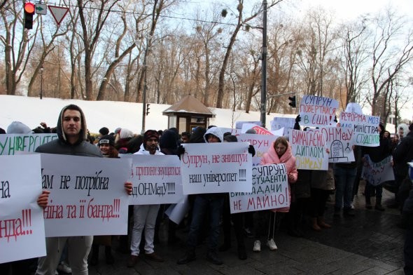 16 січня студенти вузу пройшли колоною від Кабміну до МОЗ із плакатами і вінками. Так вони відреагували на ініціативу МОЗ реорганізувати вуз шляхом злиття з Кримським державним медуніверситетом ім. Георгіївського. Про це студенти дізналися з розпорядження, опублікованого на сайті уряду 14 січня.