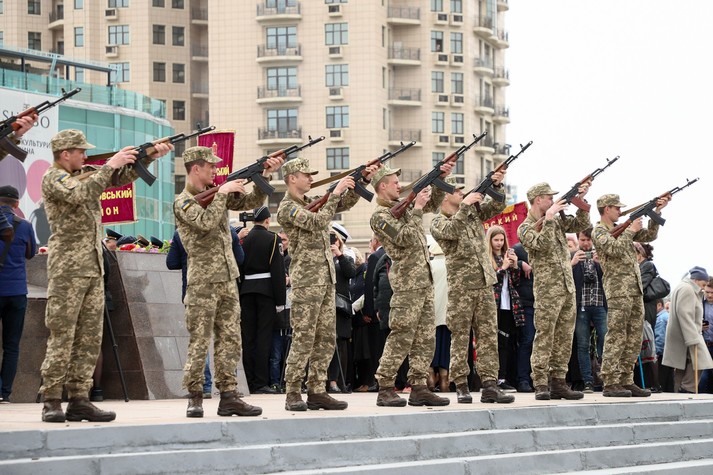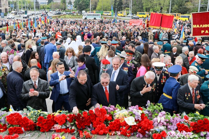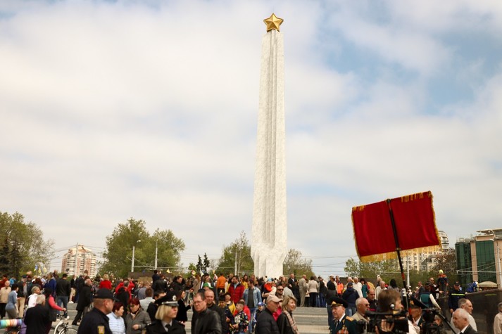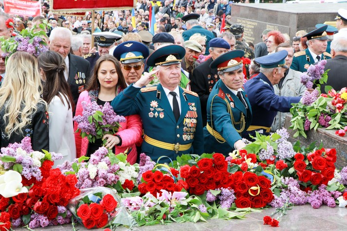 Вшановуючи подвиг героїв Другої світової війни, тисячі одеситів прийшли покласти квіти до стели «Крила Перемоги» на площі Десятого квітня.
