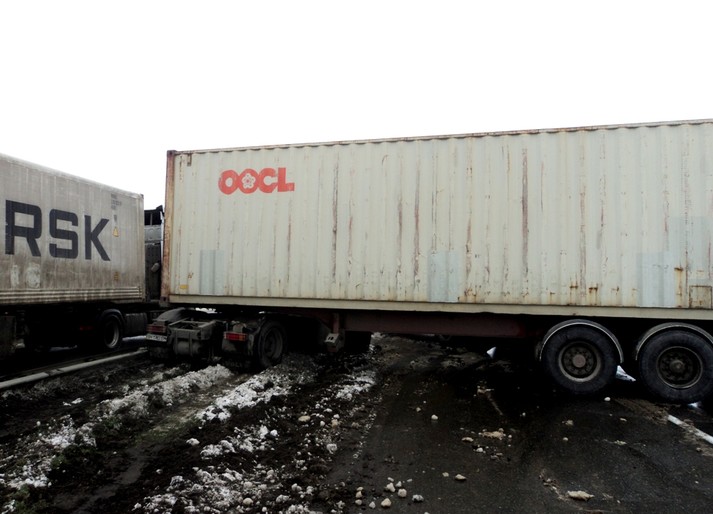 Через 30 хвилин рятувальники прибули на місце ДТП, де зіткнулися три вантажні автомобілі, один з яких перекрив проїзд на трасі.