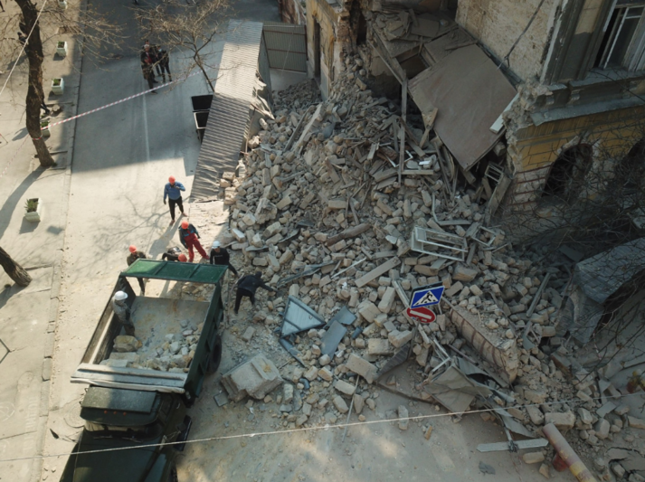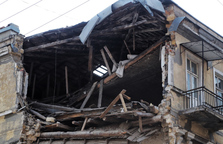 У центрі Одеси на розі вулиці Канатної та провулку Нахімова обвалився старовинний будинок.