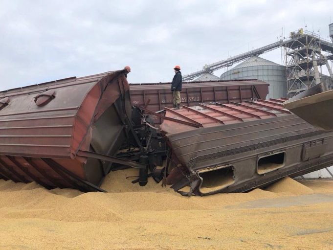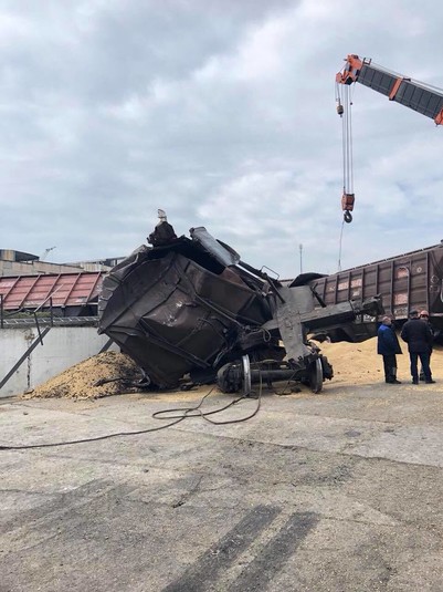 У Чорноморську перекинувся вантажний потяг з зерном. Фоторепортаж з місця події
