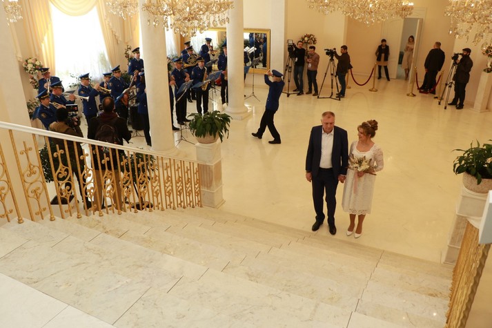У День закоханих в одеському Палаці одружень грав військовий оркестр