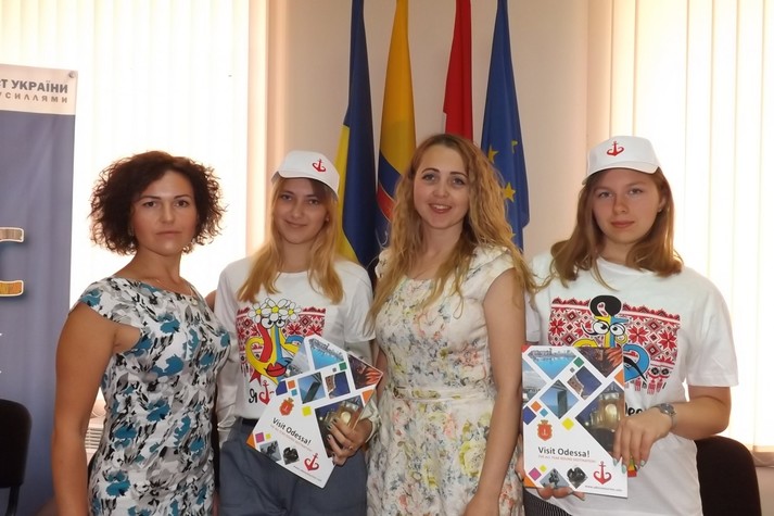 Одеські студенти - волонтери проекту «Інфогруп» надають туристам інформаційну допомогу і проводять анкетування в найбільш відвідуваних локаціях