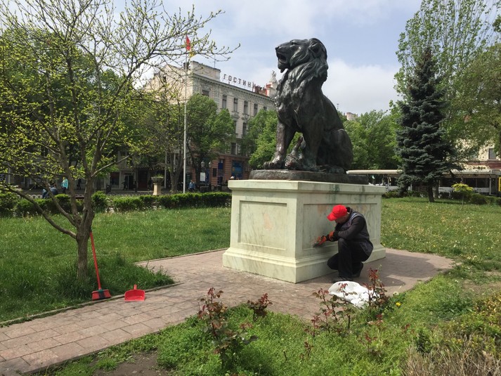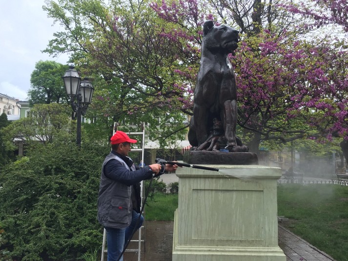 У Міському саду Одеси помили «лева і левицю» (фото)