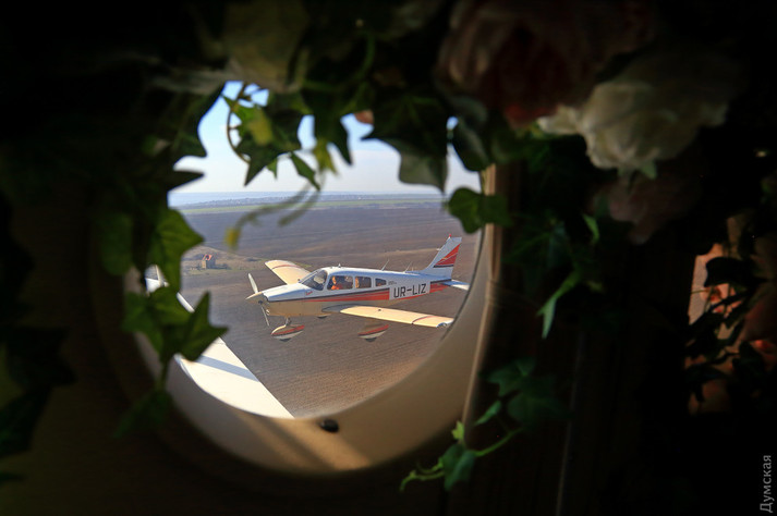 У небі над Одесою вперше в історії України розписалися молодята. Фоторепортаж з крила літака