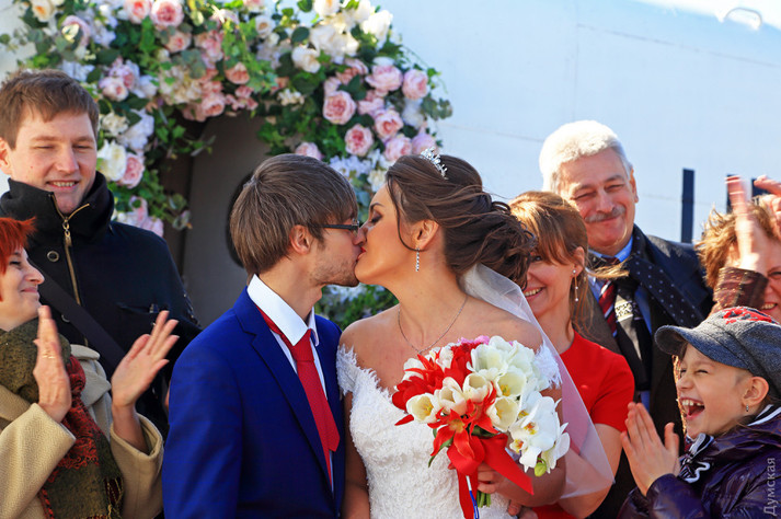 Молодята йшли до цієї події рівно півроку. Наречена Марія Попович давно пов'язала свою долю з авіацією, вона сім років пропрацювала прес-секретарем міжнародного аеропорту «Одеса» і завжди хотіла вийти заміж не так, як всі.