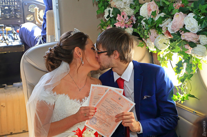 Вирулив на смугу, пілоти Василь Усов і Вадим Громов впевнено підняли трудягу Ан-2 в черговий, хоч і незвичайний політ. Набравши 800 метрів висоти, Вадим дав знак, що можна починати церемонію. Протокольна мова реєстратора, довгоочікуване «так», надягання кілець і вітальний поцілунок - все, як завжди, але треба розуміти, що ніхто і ніколи в нашій країні не робив цього в літаку.