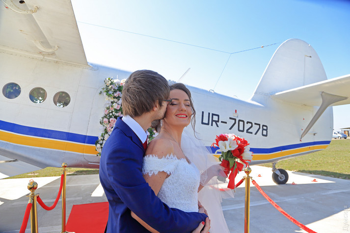 Літак Ан-2П, який кличуть у народі Аннушкою, злетівши з приміського спортивного аеродрому Гідропорт, підняв в своїх комфортабельних кріслах 12 святково одягнених людей. Батьки, свідки і друзі молодих стали пасажирами цього незвичайного рейсу. Серед них була дівчина, яка в цьому польоті становила акт цивільного стану. Реєстратор Суворовського РАГСу Анна Колесник вперше робила свою роботу в такому незвичайному місці.