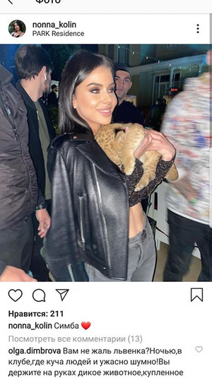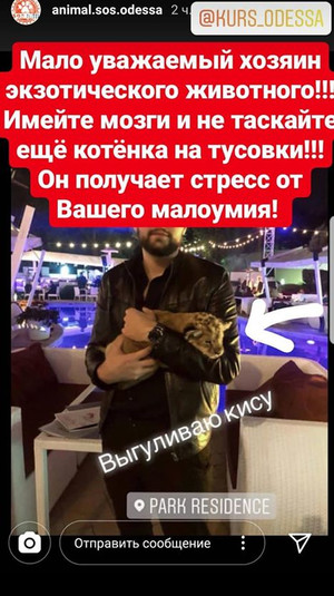 «Це не любов до тварин, це смердючий егоцентризм!», – пише одеситка й цікавиться, хто продає диких тварин, чому це не регулюється, чому охорона клубу пустила з ним у приміщення, де багато людей, шум, галас, спалахи?