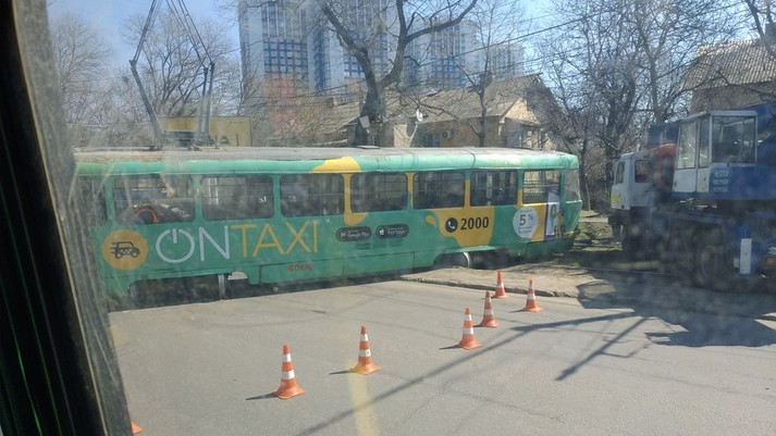В Одесі на вулиці Толбухіна трамвай №13 зійшов з рейок. Він зіштовхнувся з легковиком Toyota, який від удару відкинуло на ще одну автівку Volkswagen.