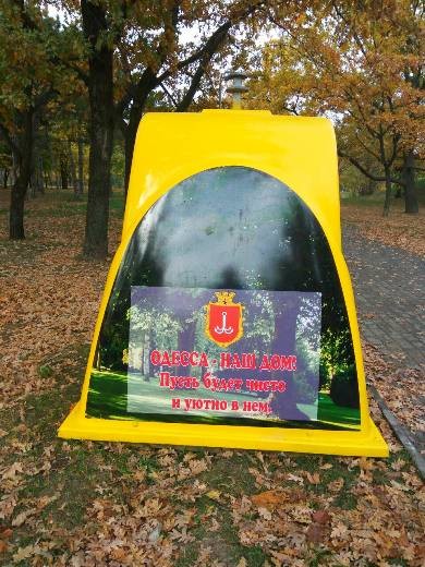 В одеському дендропарку Перемоги в рамках експерименту встановили контейнери для роздільного збору сміття. Зокрема, ці контейнери призначені для збору пляшок з поліетилену та алюмінію.