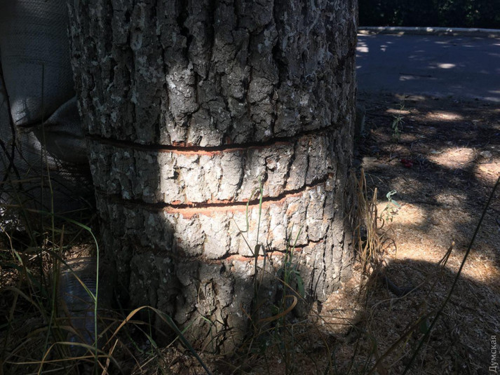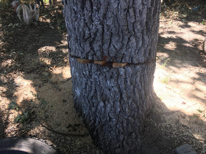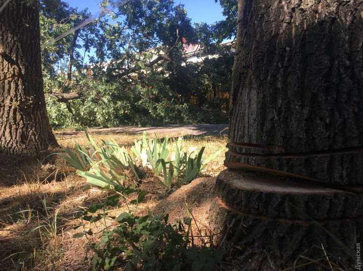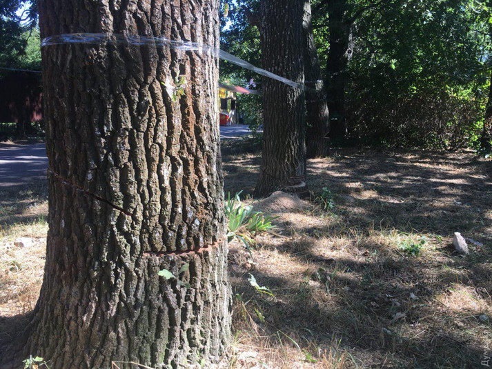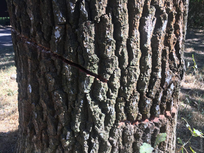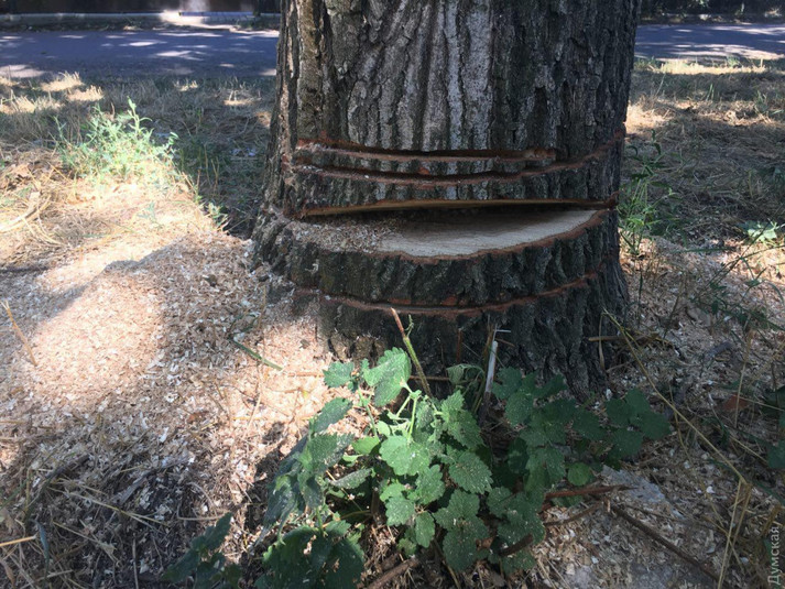 Як повідомляє з посиланням на очевидців «Думська», шість чоловіків з бензопилами серйозно пошкодили 11 дубів, і два з них встигли повалити на дорогу. В цей момент поряд проїжджав автомобіль і гуляли діти. На щастя, ніхто не постраждав.