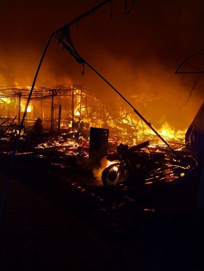 О 6 годині пожежу ліквідовано на площі 500 м2. Жертв та постраждалих немає.