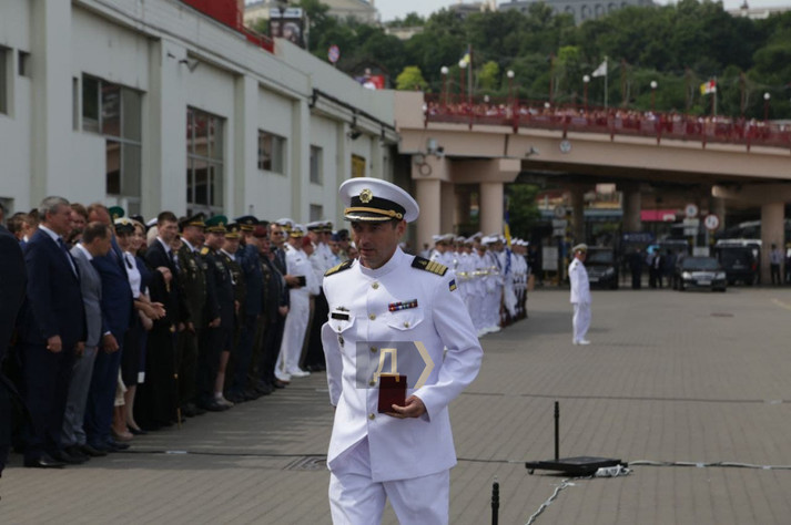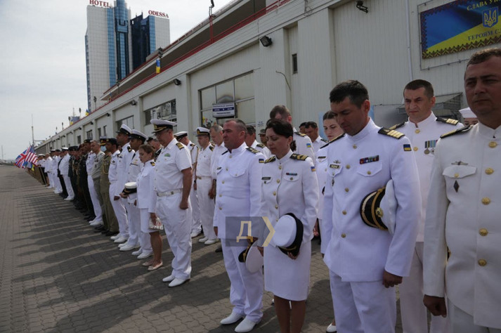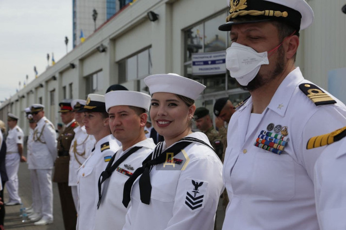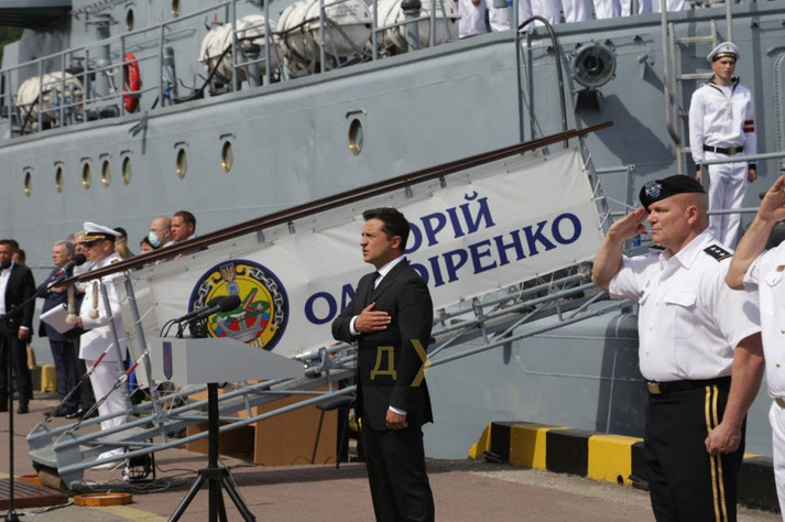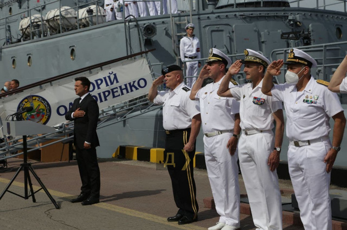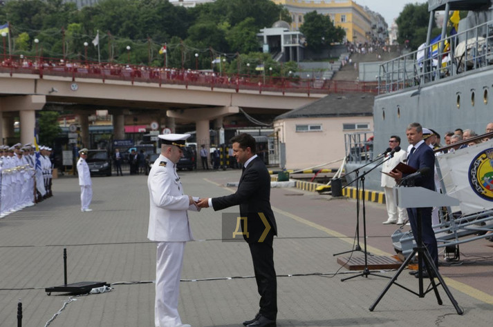 Президент виголосив промову з нагоди Дня Військово-Морських Сил на причалі Одеського морвокзалу, уздовж якого вишикувалися кораблі національного флоту та країн НАТО, які беруть участь в навчаннях Sea Breeze-2021. Українські ВМСУ представлені середнім десантним кораблем «Юрій Оліфіренко» і двома «Айленд».