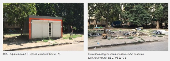 Так, з 19 липня 2019 року в Одесі демонтовано 2 тимчасових споруди. Крім того, були виявлені і демонтовані 11 незаконно розміщених елементів торгівлі.