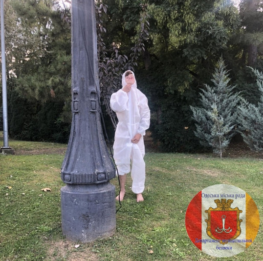 Зазначається, що на прохання охоронців чоловік реагував агресивно та пересувався в безпосередній близькості від вогню, чим наражав себе на небезпеку. На місце викликали поліцію та медиків. Після недовгої бесіди, чоловіка вдалося переконати одягнутися та у супроводі правоохоронців пройти до автомобіля швидкої допомоги. Одягли чоловіка, судячи з фото, в одноразовий захисний комбінезон, які закупалися у медзаклади для запобігання поширенню коронавірусної інфекції.