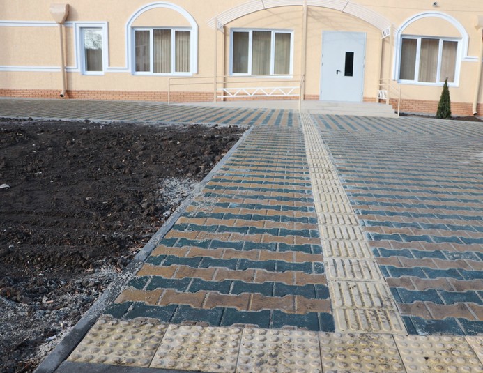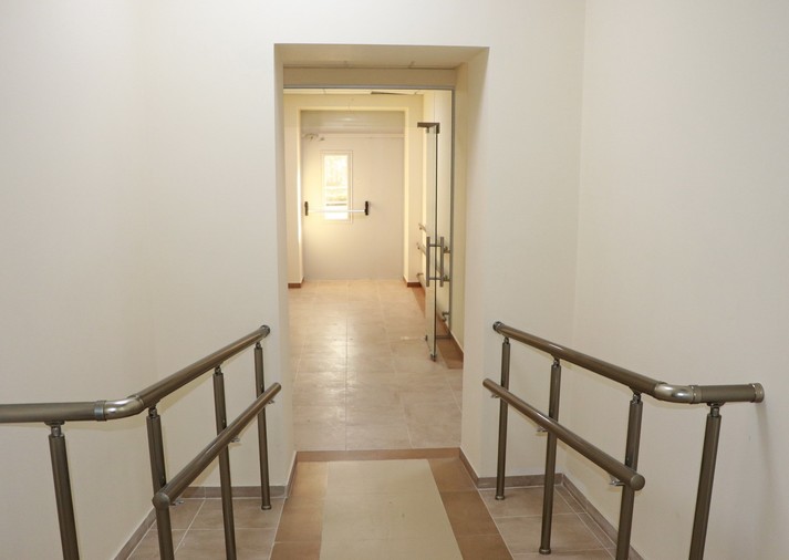 Всі входи і виходи в будівлю оснащені пандусами та навісами, у санвузлах встановлені розширені двері і спеціальні поручні з урахуванням потреб людей з інвалідністю.