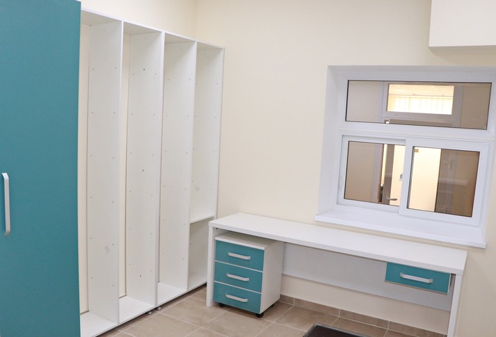 Для розділення потоків пацієнтів дитяче відділення і сімейна амбулаторія обладнані окремими входами і евакуаційними виходами. Всі двері на шляхах виходу з будівлі оснащені спеціальними ручками, що забезпечують можливість розблокування і відкриття дверей зсередини при евакуації, навіть коли замок закритий. Будівля обладнана сучасною системою протипожежного захисту, виконано інженерне облаштування внутрішніх приміщень, систем водопостачання, опалення, вентиляції та електромереж.
