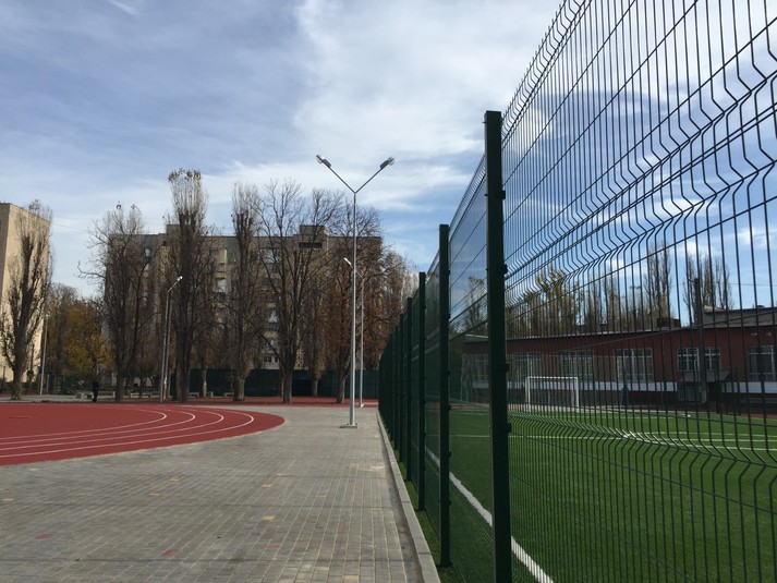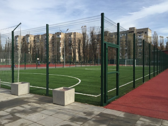 Навколо всіх майданчиків влаштовано сітчасту огорожу і облаштовано вуличне освітлення.