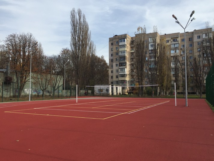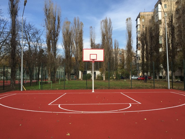 Баскетбольний майданчик, майданчик для дітей молодшого віку і бігові доріжки покриті гумовою крихтою з поліуретаном, що також максимально збільшує термін служби спортмайданчиків.