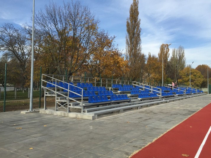 Також до складу спорткомплексу входять бігові доріжки, місце для стрибків в довжину і трибуни для глядачів.