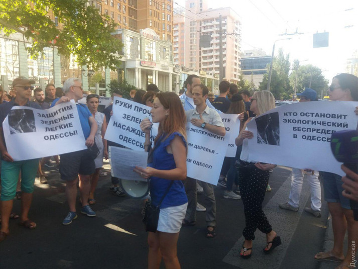 Нагадаємо, 4 серпня близько десяти молодих людей з бензопилами протягом півгодини знищили понад двісті дерев, розташованих в парковій зоні, де раніше був будинок прийомів Одеської міськради, а нині володіння ПП «Дофін». Вирубка дерев викликала великий суспільний резонанс в Одесі.
