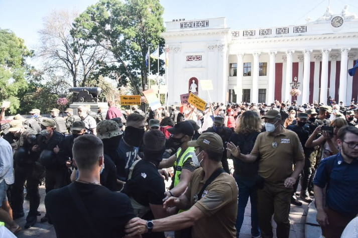 В Одесі мітинг проти ЛГБТ-прайду закінчився бійкою активістів руху «Традиція і порядок» з поліцією (відео)