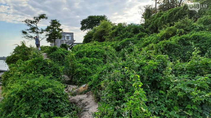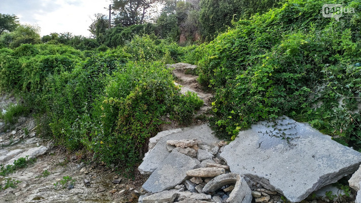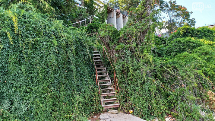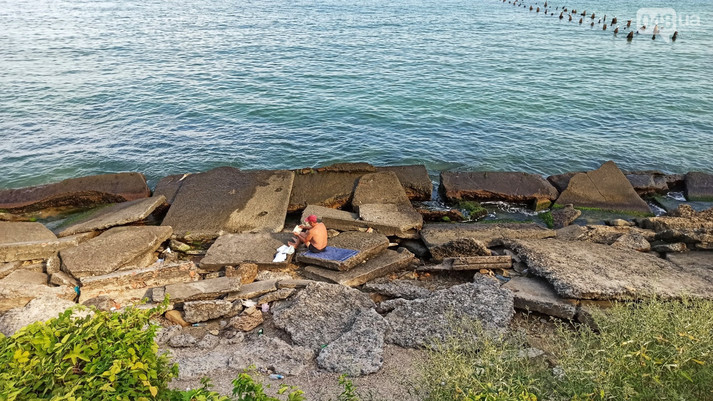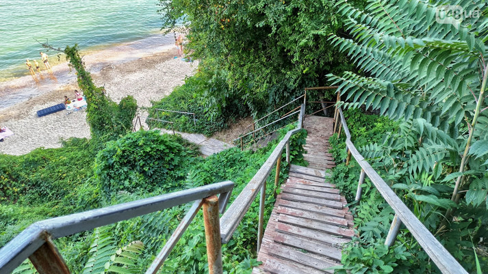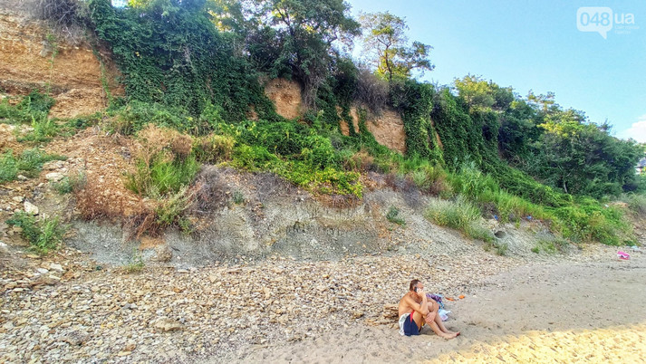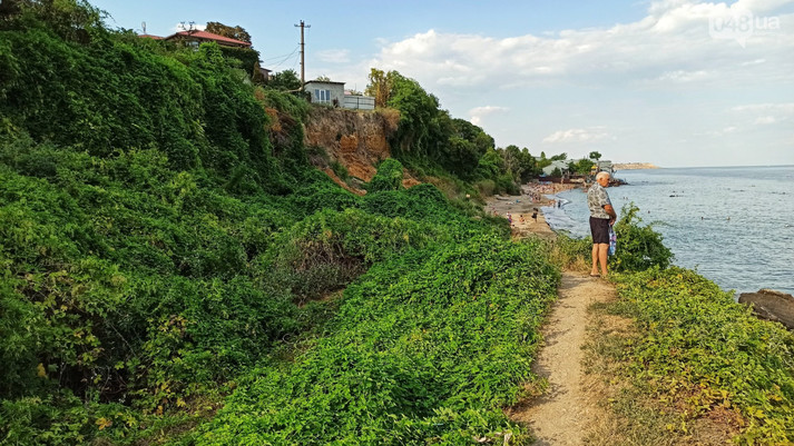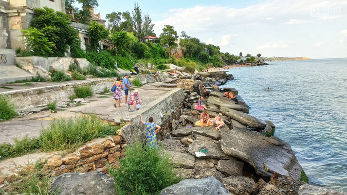 Незважаючи на це на піску повно відпочиваючих, в тому числі пенсіонерів та дітей. Люди спускаються з приватного сектора по саморобним сходах на обриві.