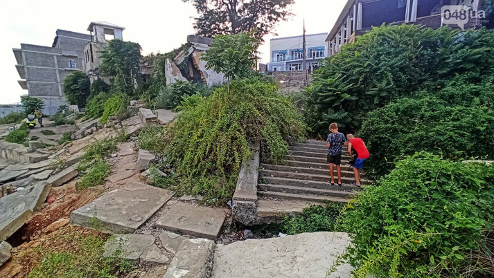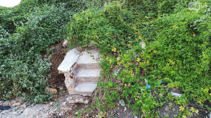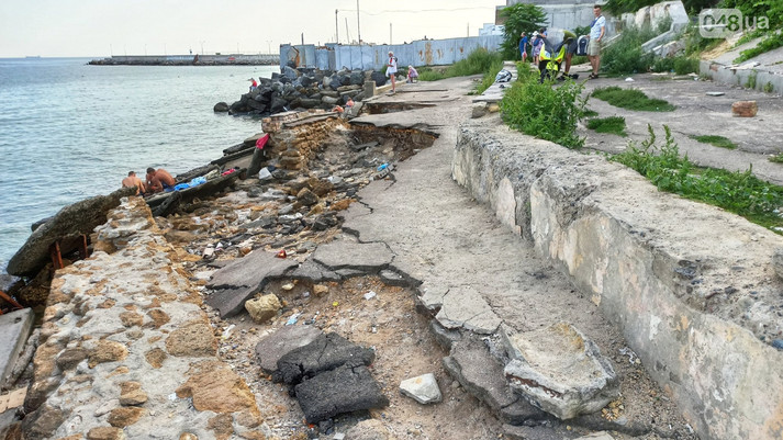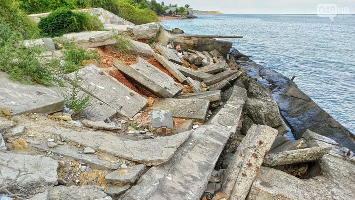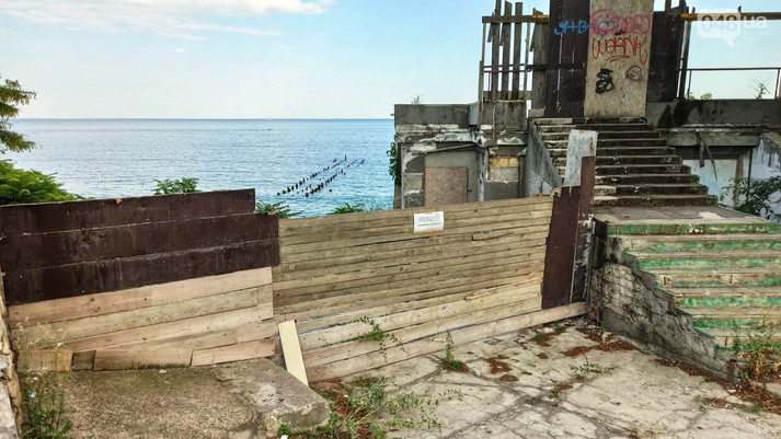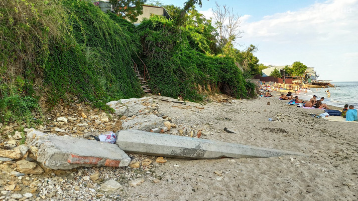 Кілька років тому, на пляжі в Чорноморці, стався зсув. В результаті обвалення схилу постраждала інфраструктура пляжу, а будівлі почали розсипатися.