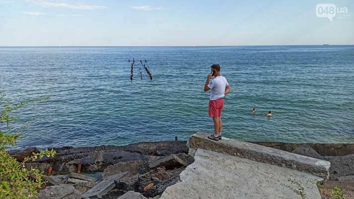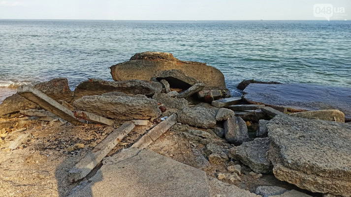 Зараз про причалі нагадує тільки стирчить з води фундамент, а плитковий пляж поруч виглядає як після авіаційної бомбардування.