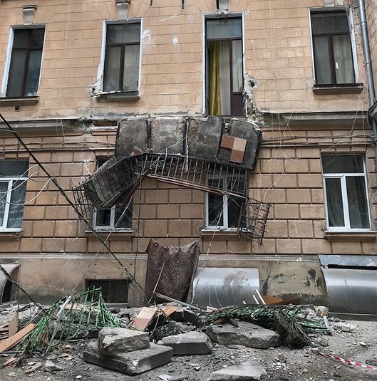 У п'ятницю, 2 лютого, в Одесі на Катерининській вулиці у внутрішньому дворі чотириповерхової будівлі обвалилися два балкони.