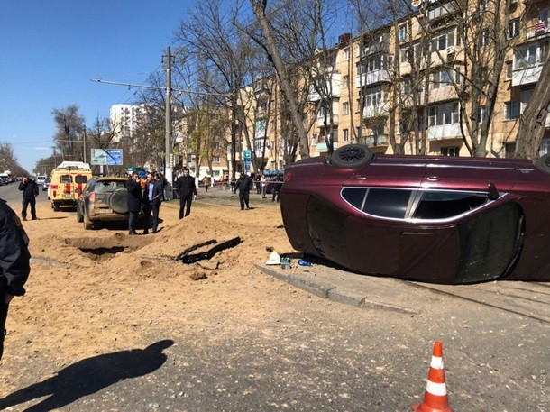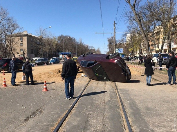 В Одесі підірвали BMW – авто перекинуло на трамвайні колії